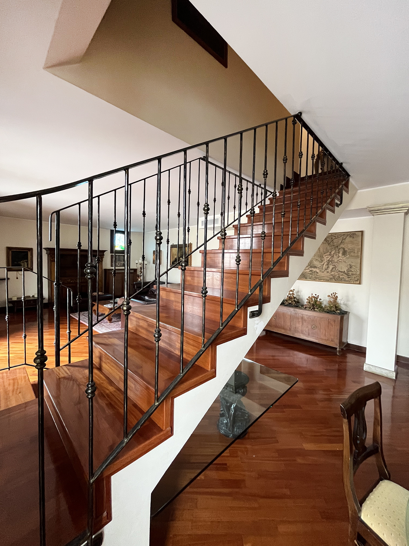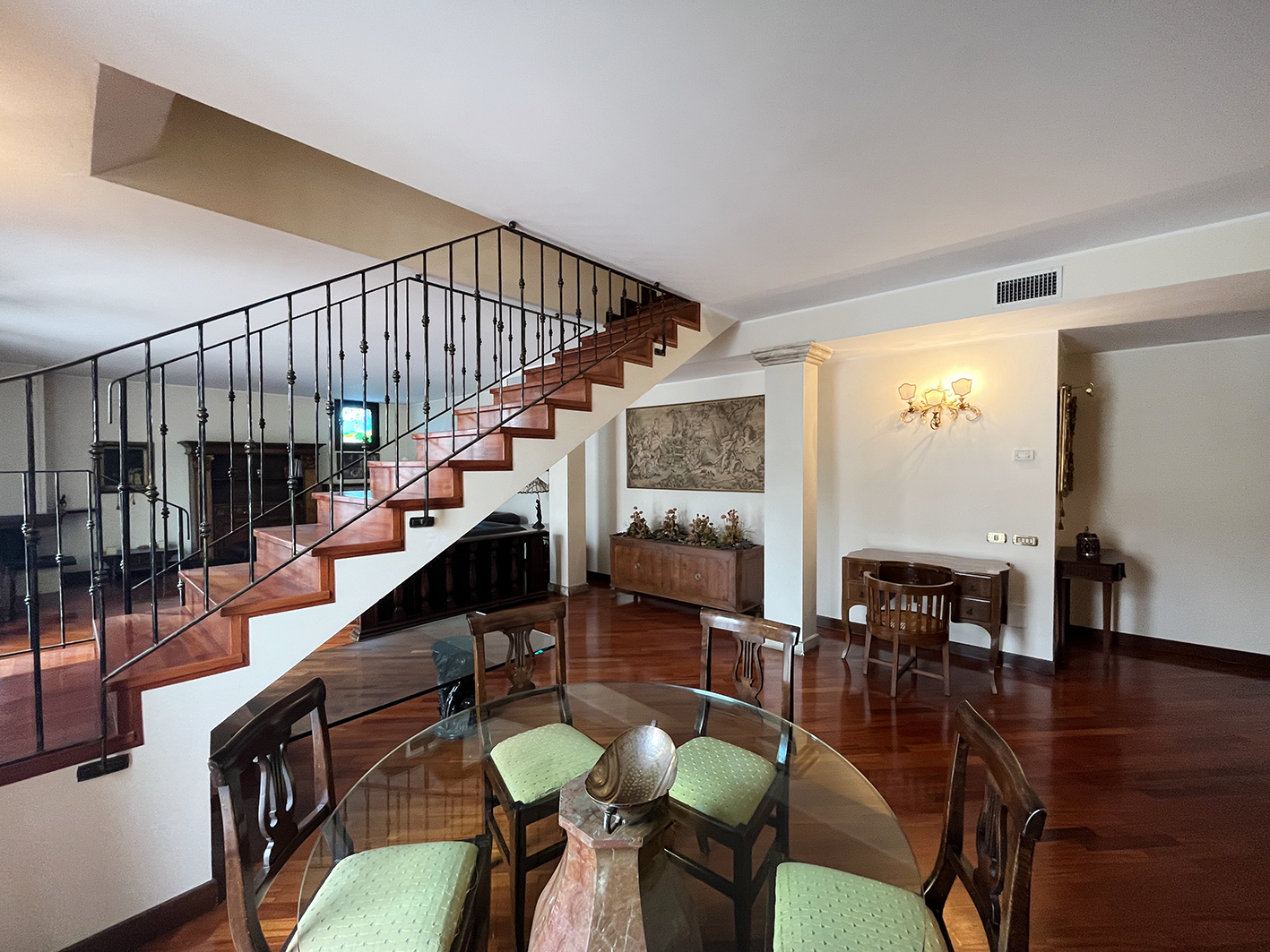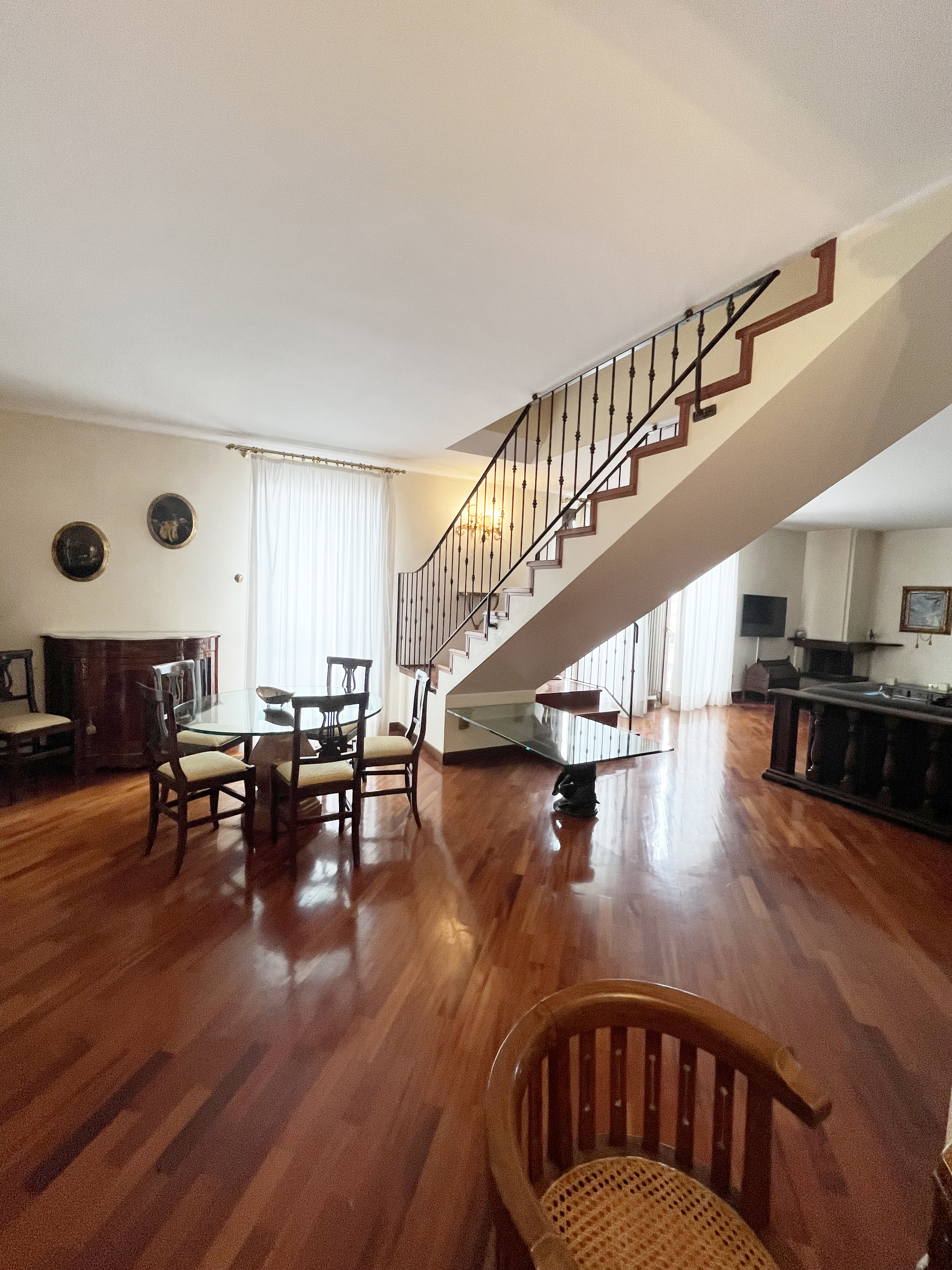 Inserito in ottimo contesto residenziale con giardino alberato condominiale ben curato, delizioso e ampio appartamento all'ultimo piano sviluppato su due livelli con finiture signorili. Ingresso con comoda armadiatura a muro, meraviglioso salone con zona conversazione con caminetto e zona pranzo, cucina abitabile tutta arredata, bagno con lavanderia; una bella scala a vista in legno conduce al piano superiore con una zona notte servita da un corridoio funzionale a tutte le 4 camere da letto di cui 3 matrimoniali e una singola spaziosa, 2 bagni entrambi finestrati. Al piano primo sotto strada raggiungibile con l'ascensore, spazioso garage di proprietà. Pavimenti in iroko, serramenti in legno con vetrocamera e scuri in legno, impianto di canalizzazione in ogni stanza, riscaldamento autonomo. La posizione permette di godere di una impagabile tranquillità ma allo stesso tempo di avere tutti i servizi a portata di mano! € 540.000,00 ape 129,63 Cl. E