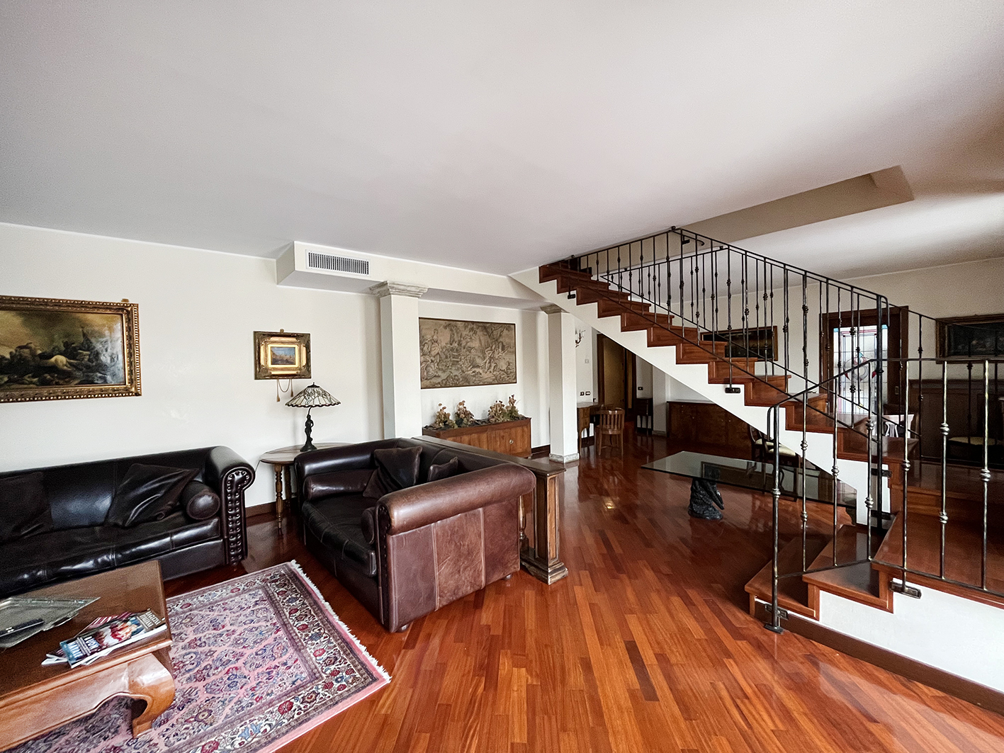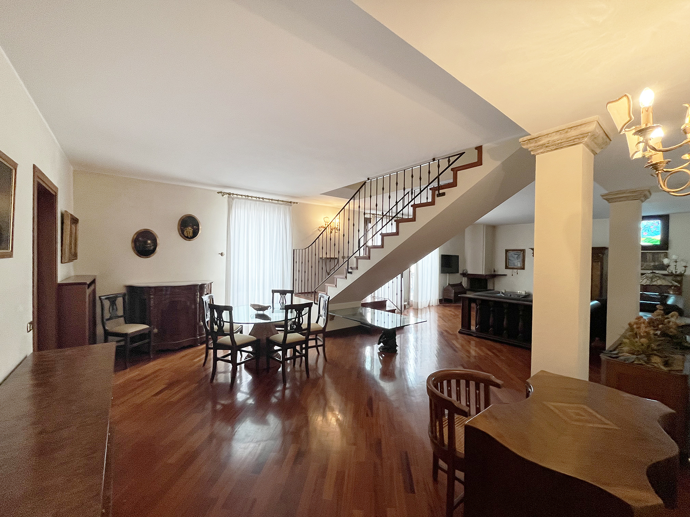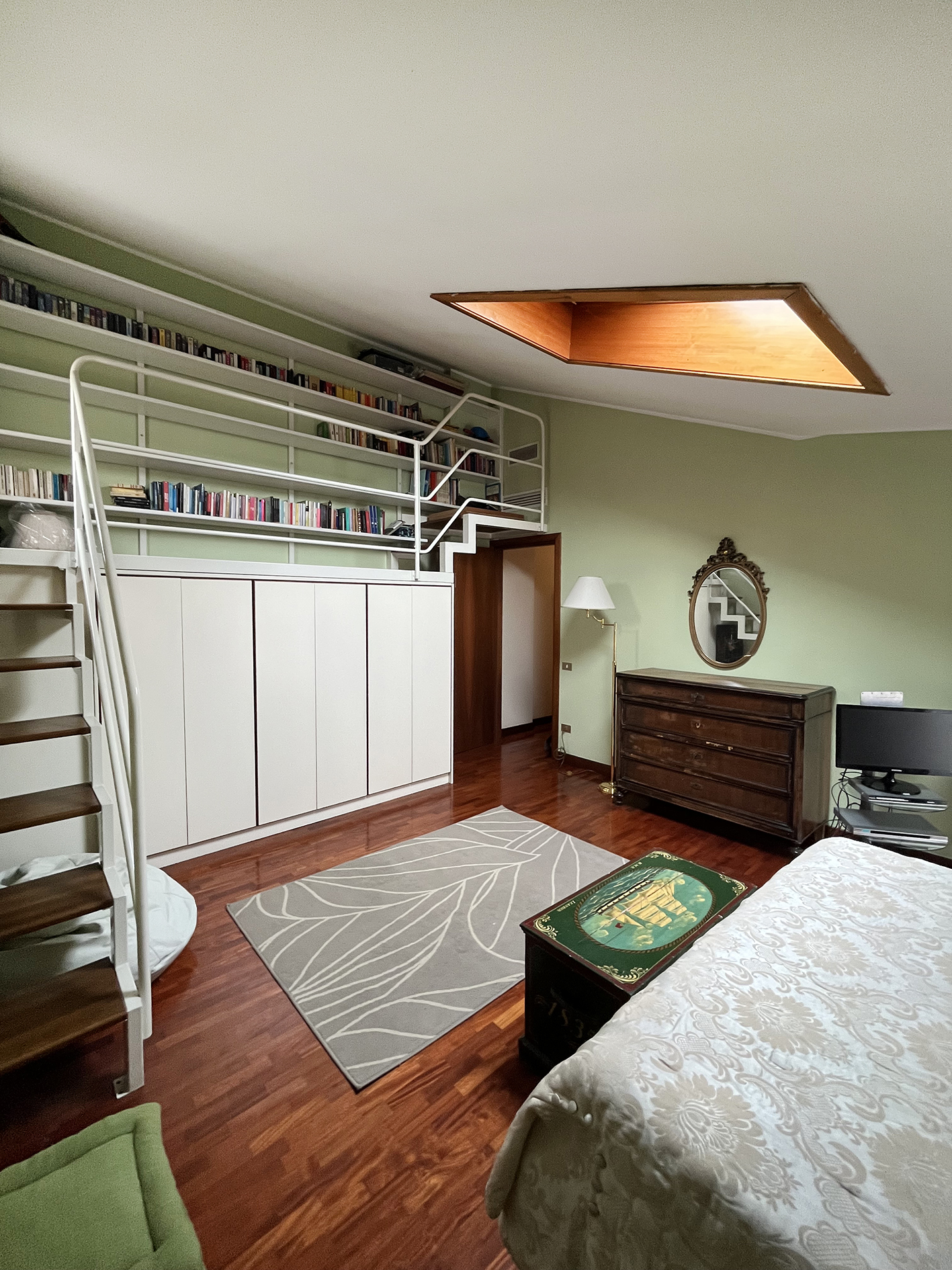 Inserito in ottimo contesto residenziale con giardino alberato condominiale ben curato, delizioso e ampio appartamento all'ultimo piano sviluppato su due livelli con finiture signorili. Ingresso con comoda armadiatura a muro, meraviglioso salone con zona conversazione con caminetto e zona pranzo, cucina abitabile tutta arredata, bagno con lavanderia; una bella scala a vista in legno conduce al piano superiore con una zona notte servita da un corridoio funzionale a tutte le 4 camere da letto di cui 3 matrimoniali e una singola spaziosa, 2 bagni entrambi finestrati. Al piano primo sotto strada raggiungibile con l'ascensore, spazioso garage di proprietà. Pavimenti in iroko, serramenti in legno con vetrocamera e scuri in legno, impianto di canalizzazione in ogni stanza, riscaldamento autonomo. La posizione permette di godere di una impagabile tranquillità ma allo stesso tempo di avere tutti i servizi a portata di mano! € 540.000,00 ape 129,63 Cl. E