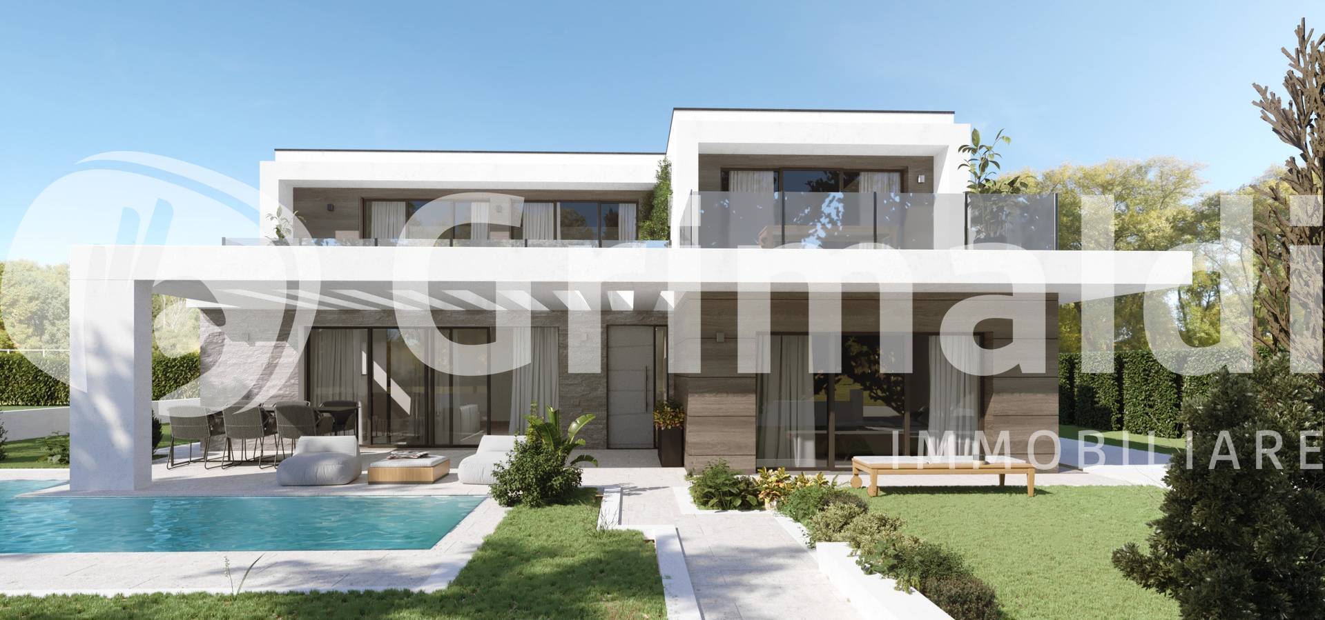 "VILLA SINGOLA" in classe A4 dal design moderno sviluppata su due livelli, ideale anche per accogliere due nuclei familiari (genitori/figli) grazie alla totale indipendenza del piano primo. La Villa si presenta al grezzo avanzato con la presenza di una piscina in muratura di 4 x 8 mt con gradoni prendisole. Il PIANO TERRA di 185 mq è sviluppato da un una zona living, tre camere da letto, ulteriore stanza da adibire a cabina armadio o studio, due bagni, lavanderia e garage. Il PIANO PRIMO di 180 mq completamente indipendente, si compone da una zona living, terrazza panoramica abitabile, tre camere da letto di cui una padronale con terrazza privata e due bagni finestrati. Garage e due posti auto interni. Rif. 251068 € 800.000,00 Classe energetica A4