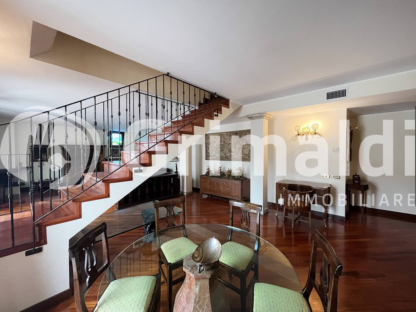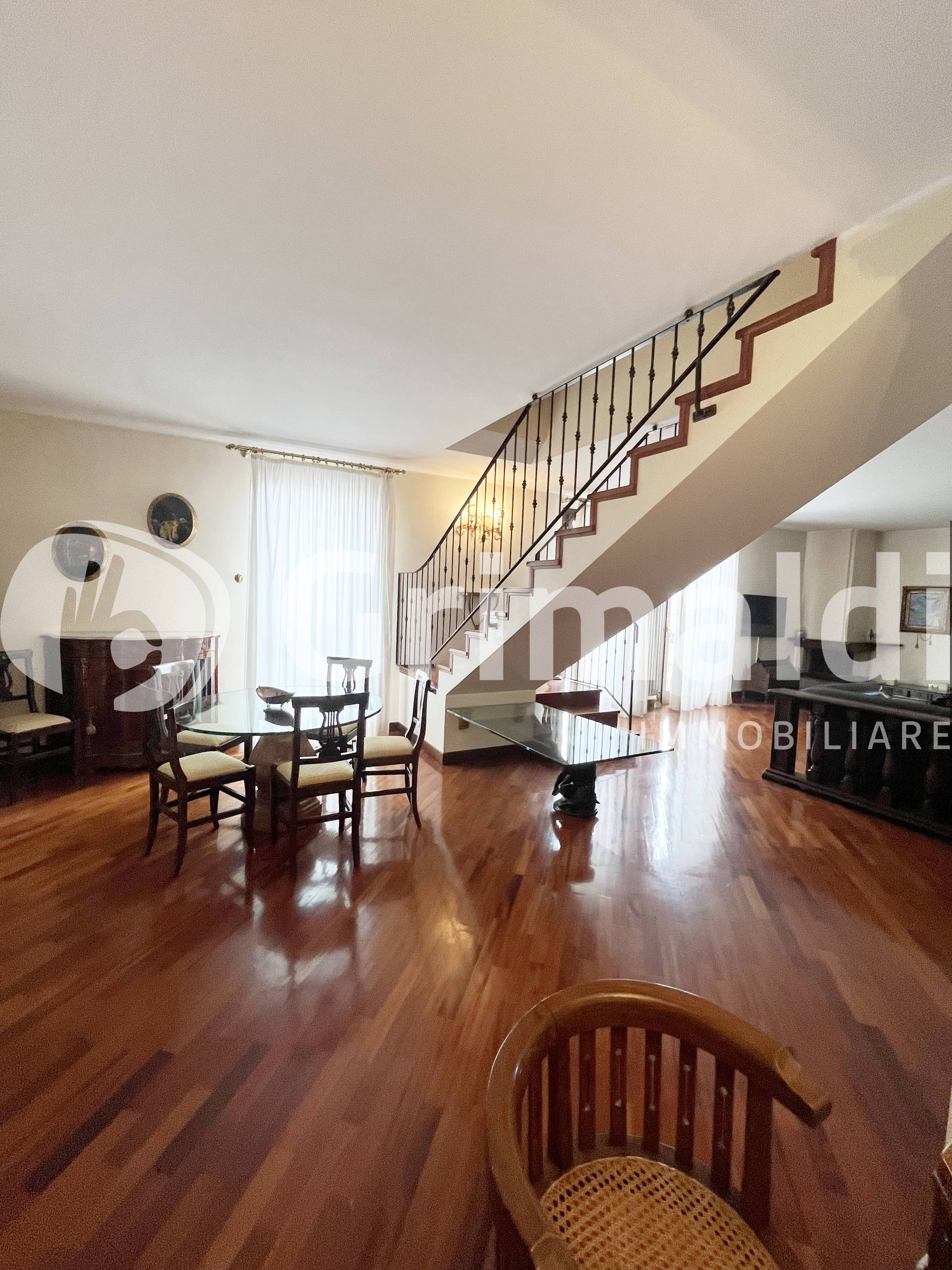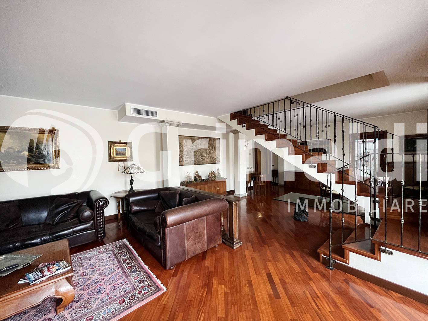 Inserito in ottimo contesto residenziale con giardino alberato ben curato, delizioso e ampio appartamento all'ultimo piano sviluppato su due livelli con finiture signorili. Ingresso con comoda armadiatura a muro, meraviglioso salone con zona conversazione con caminetto e zona pranzo, cucina abitabile separata tutta arredata, bagno con lavanderia; una bella scala a vista in legno conduce al piano superiore con una zona notte servita da un corridoio funzionale a tutte le 4 camere da letto di cui 3 matrimoniali e una singola spaziosa, 2 bagni entrambi finestrati. Al piano primo sotto strada raggiungibile con l'ascensore, spazioso garage di proprietà. Pavimenti in iroko, serramenti in legno con vetrocamera e scuri in legno, impianto di condizionamento canalizzato in ogni stanza, riscaldamento autonomo. La posizione permette di godere di una impagabile tranquillità ma allo stesso tempo di avere tutti i servizi a portata di mano! € 540.000,00 ape 129,63 Cl. E