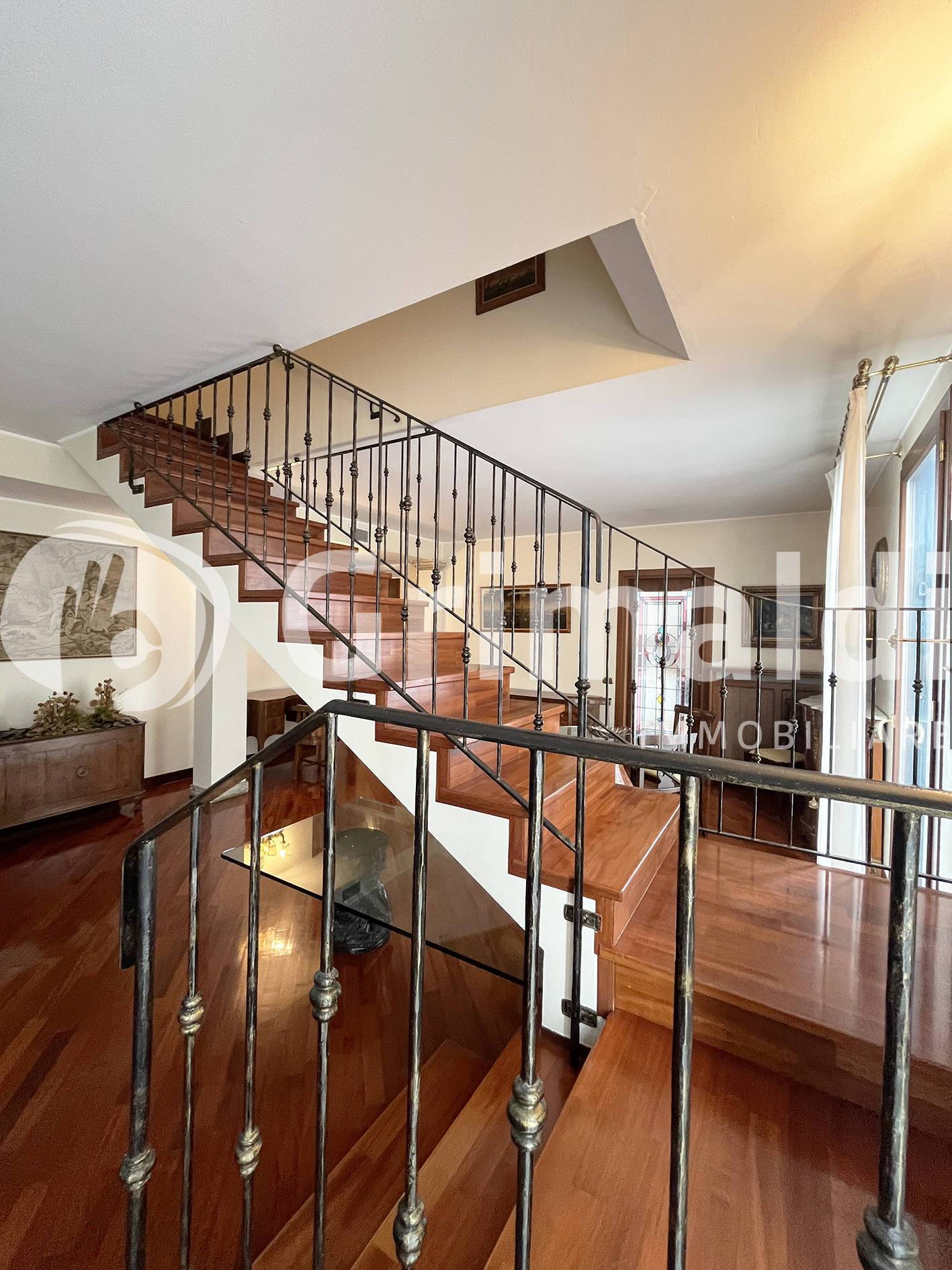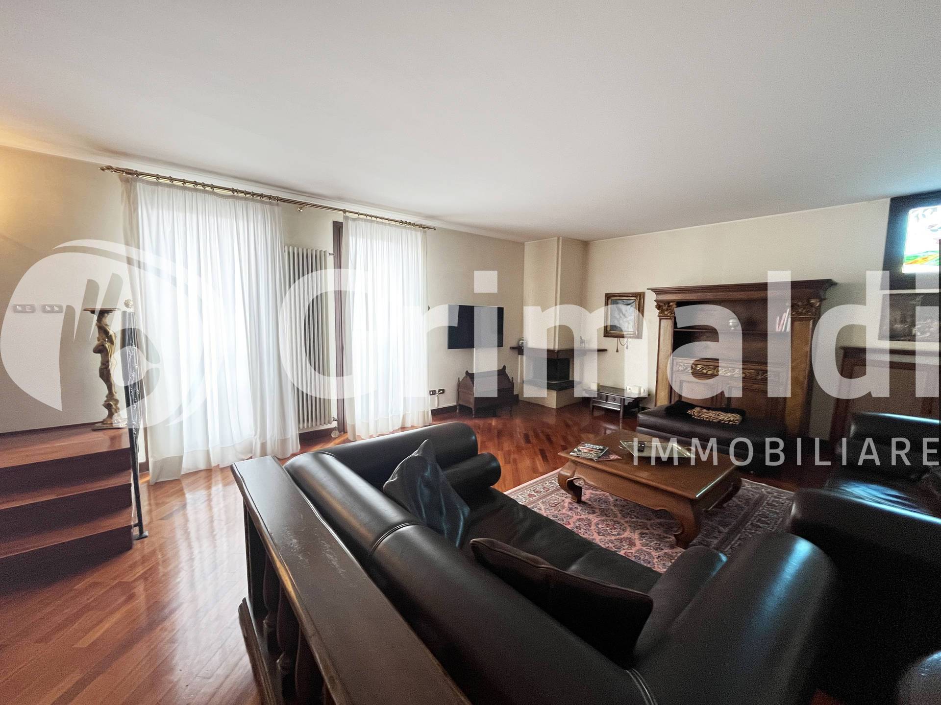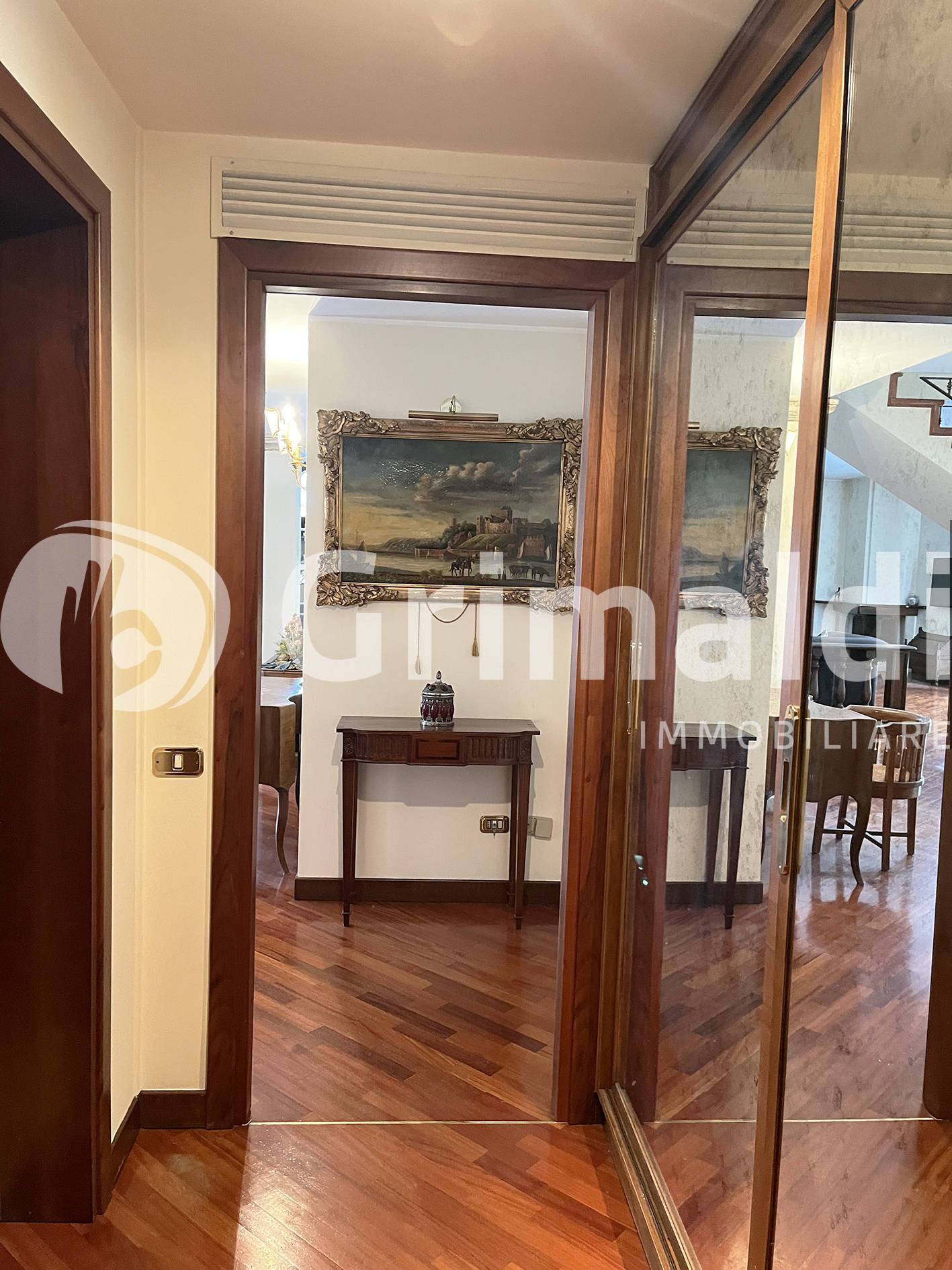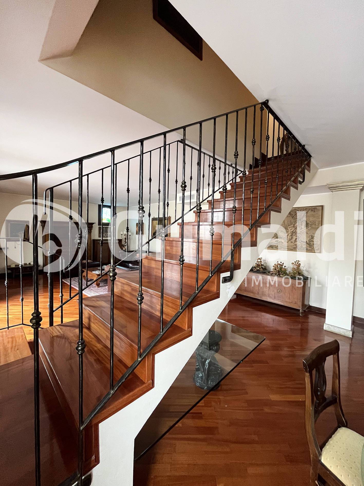 Inserito in ottimo contesto residenziale con giardino alberato ben curato, delizioso e ampio appartamento all'ultimo piano sviluppato su due livelli con finiture signorili. Ingresso con comoda armadiatura a muro, meraviglioso salone con zona conversazione con caminetto e zona pranzo, cucina abitabile separata tutta arredata, bagno con lavanderia; una bella scala a vista in legno conduce al piano superiore con una zona notte servita da un corridoio funzionale a tutte le 4 camere da letto di cui 3 matrimoniali e una singola spaziosa, 2 bagni entrambi finestrati. Al piano primo sotto strada raggiungibile con l'ascensore, spazioso garage di proprietà. Pavimenti in iroko, serramenti in legno con vetrocamera e scuri in legno, impianto di condizionamento canalizzato in ogni stanza, riscaldamento autonomo. La posizione permette di godere di una impagabile tranquillità ma allo stesso tempo di avere tutti i servizi a portata di mano! € 540.000,00 ape 129,63 Cl. E
