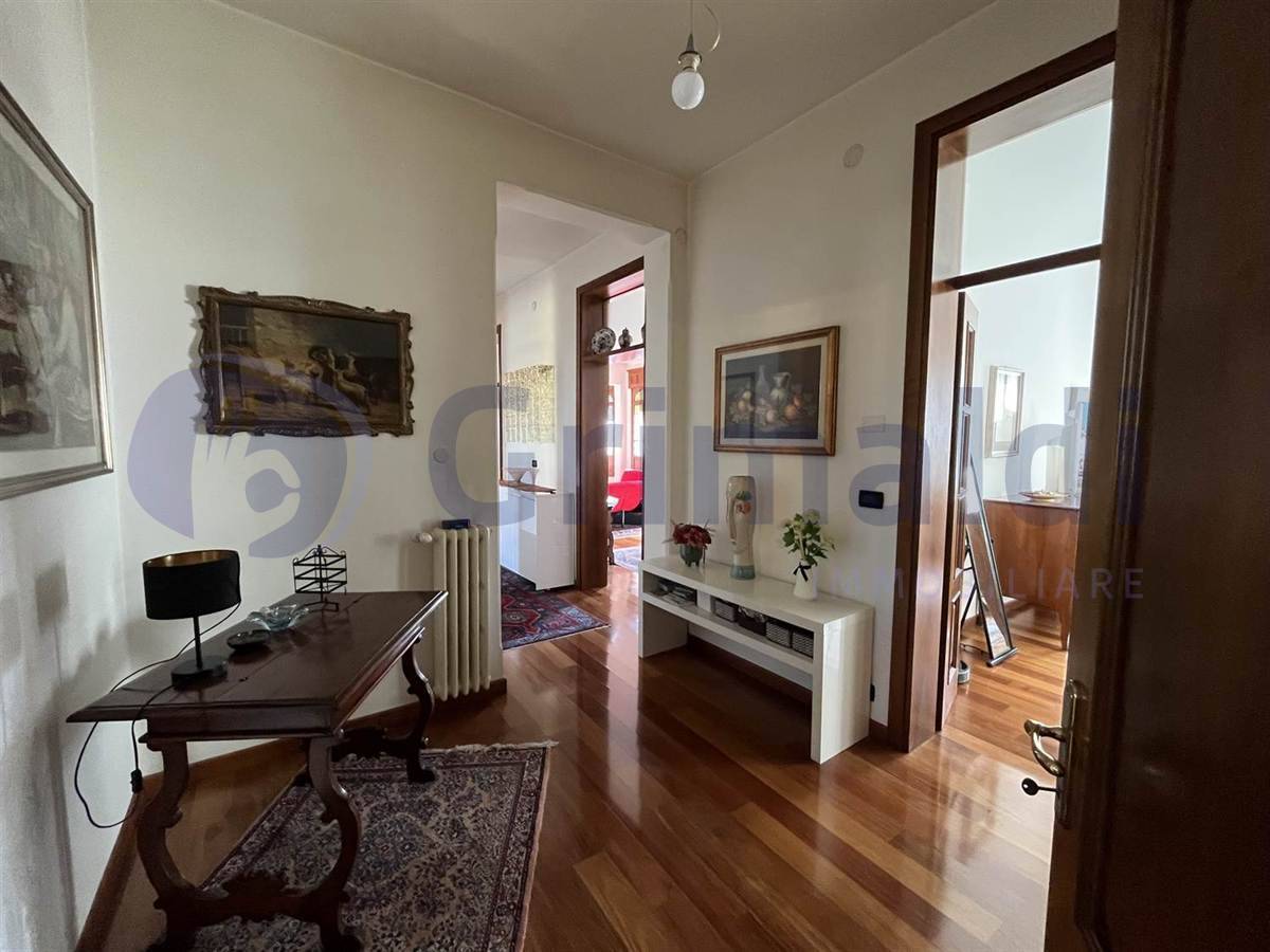 A pochi passi dall'Osservatorio Astronomico, inserito in elegante palazzina anni '30 di poche unità abitative dotata di ascensore, elegante e raffinato appartamento all'ultimo piano con vista sulle cupole del Santo. Ingresso signorile, salone con ampia zona pranzo, zona soggiorno e delizioso angolo relax, cucina abitabile tutta arredata in stile moderno con caminetto e terrazzino con affaccio interno, disimpegno zona notte, 2 camere da letto di cui una matrimoniale molto grande con comodissima cabina armadi, camera singola con altra cabina armadi e bagno padronale, altro bagno finestrato con doccia e vasca idromassaggio. La disposizione degli ambienti, per chi ne avesse la necessità, permette di realizzare anche una terza camera mantenedo una zona giorno spaziosa e confortevole. Completa l'appartamento una cantina finestrata ampia. Finituer signorili. Impianto di climatizzazione canalizzato con pompa di calore, pavimenti in legno pregiato cabreuva, porte interne in legno massiccio, alcune finestre sono in vetro piombato. € 720.000 ape 119,86 Cl. F